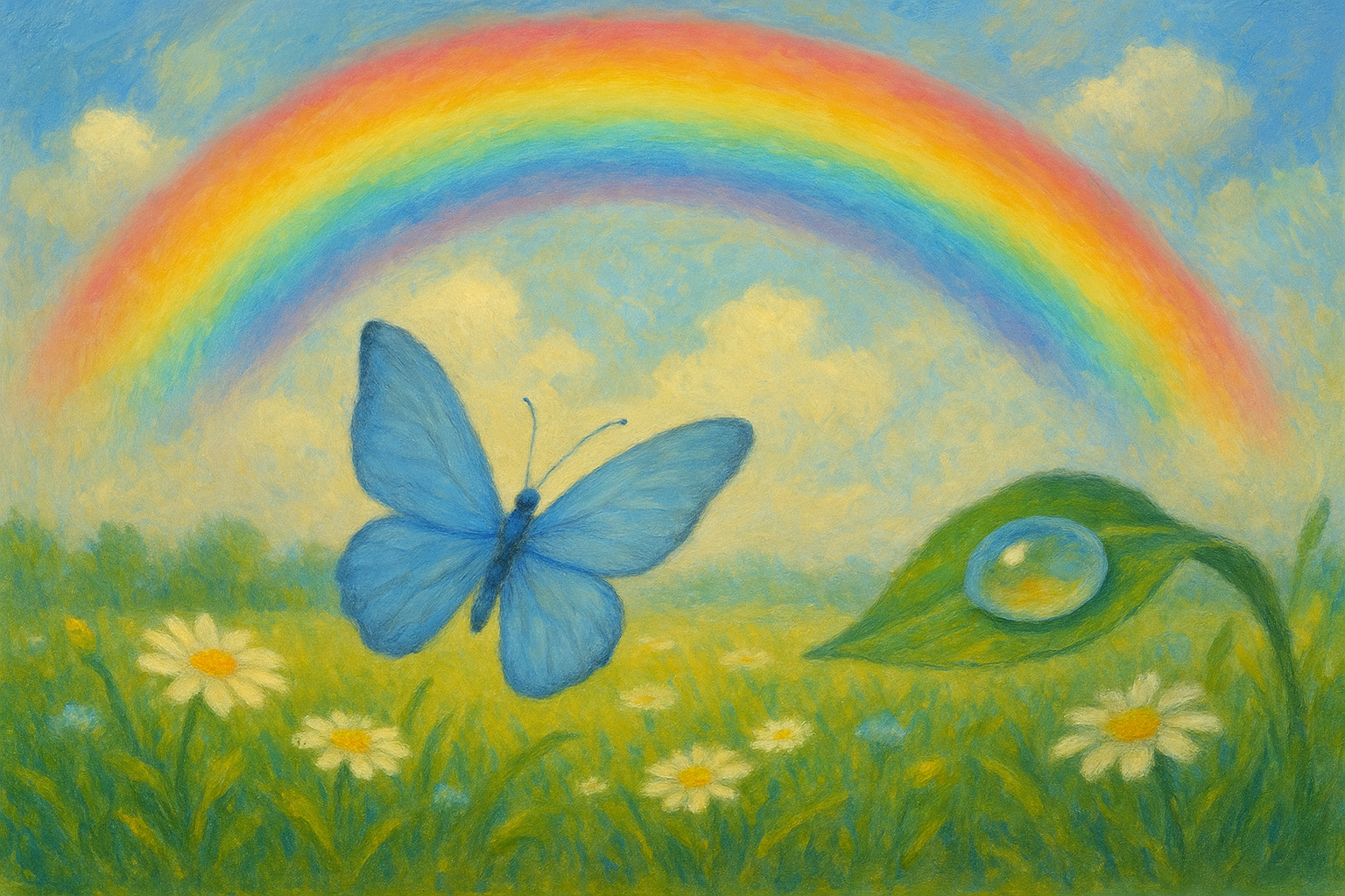 Щоразу, коли в небі після дощу з’являлася різнобарвна дуга, метелик дивився на неї й думав: