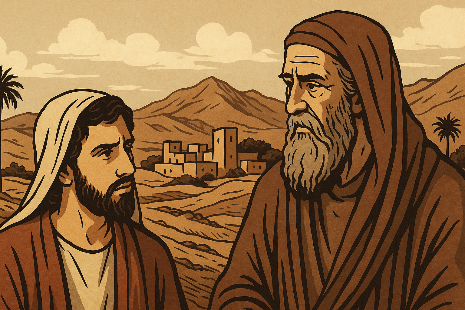 Поэма раскрывает внутренний диалог отца и сына, затрагивая темы наследия, веры и испытаний. Текст ставит вопросы о выборе и ответственности, а также о том, как древние истории откликаются в нашем настоящем.